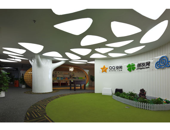 騰訊辦公大樓是中國優秀辦公室的典范,大堂都十分敞亮、通透,使員工和到訪者一進門就能立馬感受到騰訊的企業文化,在工作區方面,騰訊辦公大樓幾乎都采用了半開放式設計,這種設計方式在保證了個人的私密空間的同時,也有利于團隊的交流協作。騰訊辦公大樓的整體布局有五大特點:自由(無障礙、分隔自由);創新(空間豐富);高效(上部空間利用);透明(低私密度);藝術(人文載體)。