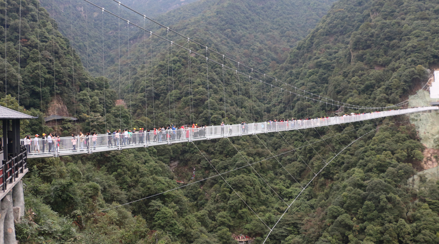 本次旅游的景點共三個,分別是挑戰(zhàn)韶關云門山玻璃橋,身心放松享受曹溪溫泉,領略世界自然遺產(chǎn)丹霞地貌放景區(qū)——丹霞山。18日早上7:30,近百名中航裝飾員工懷著激動而興奮的心情分乘兩輛旅游巴士從深圳出發(fā),一路上,大家歡聲笑語,唱歌、講故事、做游戲……精彩節(jié)目不斷,氣氛非常活躍。午飯過后,大家到達第一站“云門山風景區(qū)”,稍作調(diào)整便向1683級云梯棧道發(fā)起了挑戰(zhàn)。成功登頂后,大家來到云門山玻璃橋,它是廣東省首座全透明高空玻璃橋,橋面全部采用透明玻璃鋪設,懸于望君臺直通對面山峰,兩峰地勢險峻,中間峽谷橫穿,驚險無比。膽大的同事走在上面抬頭能看到藍天白云、群山翠綠則倒影于腳底,感受“人在空中走,景在腳下游”的悠閑愜意,也有恐高的同事勇于挑戰(zhàn)自我,克服心理與身體的雙重障礙,緊緊抓住身邊的小伙伴,一路尖叫著穿過玻璃橋,到達高峰彼端。