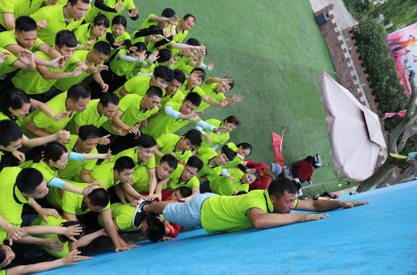 ? ? 活動開展過程中,大家在培訓師的帶領下被分成6個小組,各組隊員激情澎湃,嚴陣以待,拓展訓練拉開了序幕。 在拓展訓練項目中,一個個精心設計的比賽項目激發了大家濃厚的參與興趣與熱情。面對著各種挑戰,各隊隊員集思廣益,迎難而上,同心協力,隊員之間相互鼓勵,不逃避不放棄,所有團隊均圓滿完成了各拓展項目培訓。
