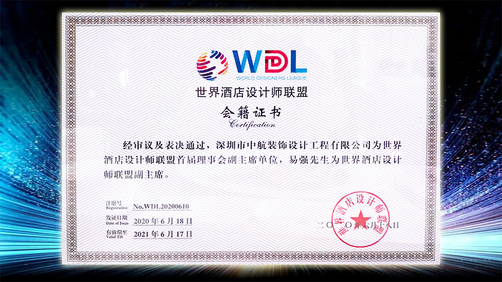 在本屆盛會上“世界酒店設計聯盟”舉行了成立儀式,經審議及表決通過中航裝飾集團榮為首屆理事會副主席主席單位,中航裝飾設計院院長易強先生為世界酒店設計師聯盟副主席。