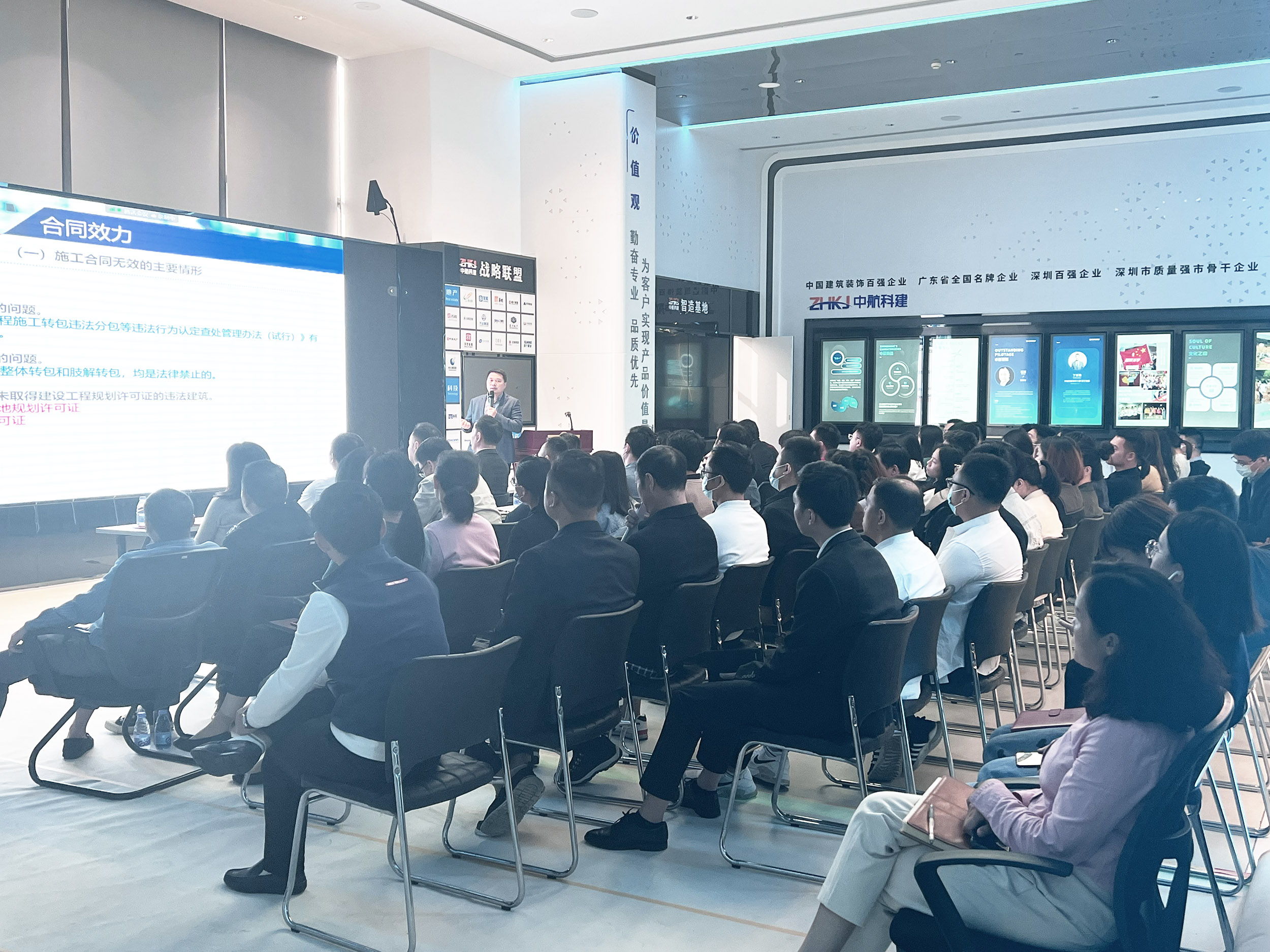 此次培訓邀請了深圳廣和律師事務所黃偉律師以建筑行業法律實務及工程管理風險防范為主題,對從合同簽訂與生效、合同管理到履行過程中的操作和風險防范,以及與建筑行業相關的重點法律規范等多方面內容進行了詳細講解,并結合公司實際工作,深入淺出地將晦澀難懂的法律條文和實際案例相結合,由案說法、以法析案,通俗易懂地介紹了工作中可能會遇到的相關法律知識,對日常工作中經常涉及的法律問題,應防范的法律風險進行了細致分析,為大家就如何防范經營法律風險、合規風險等公司治理中的重點問題上提供了有效指導。