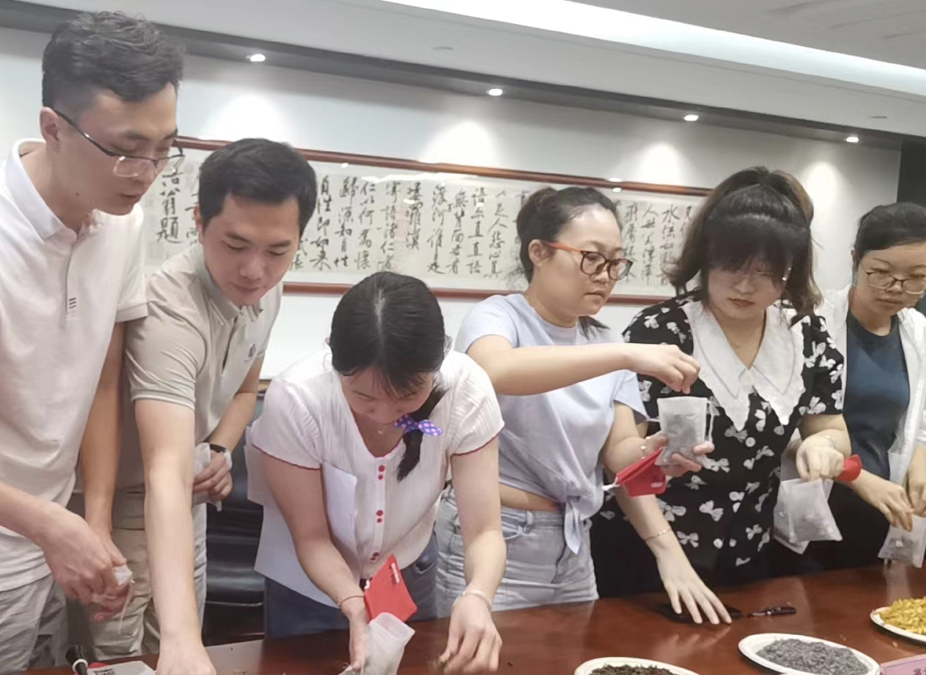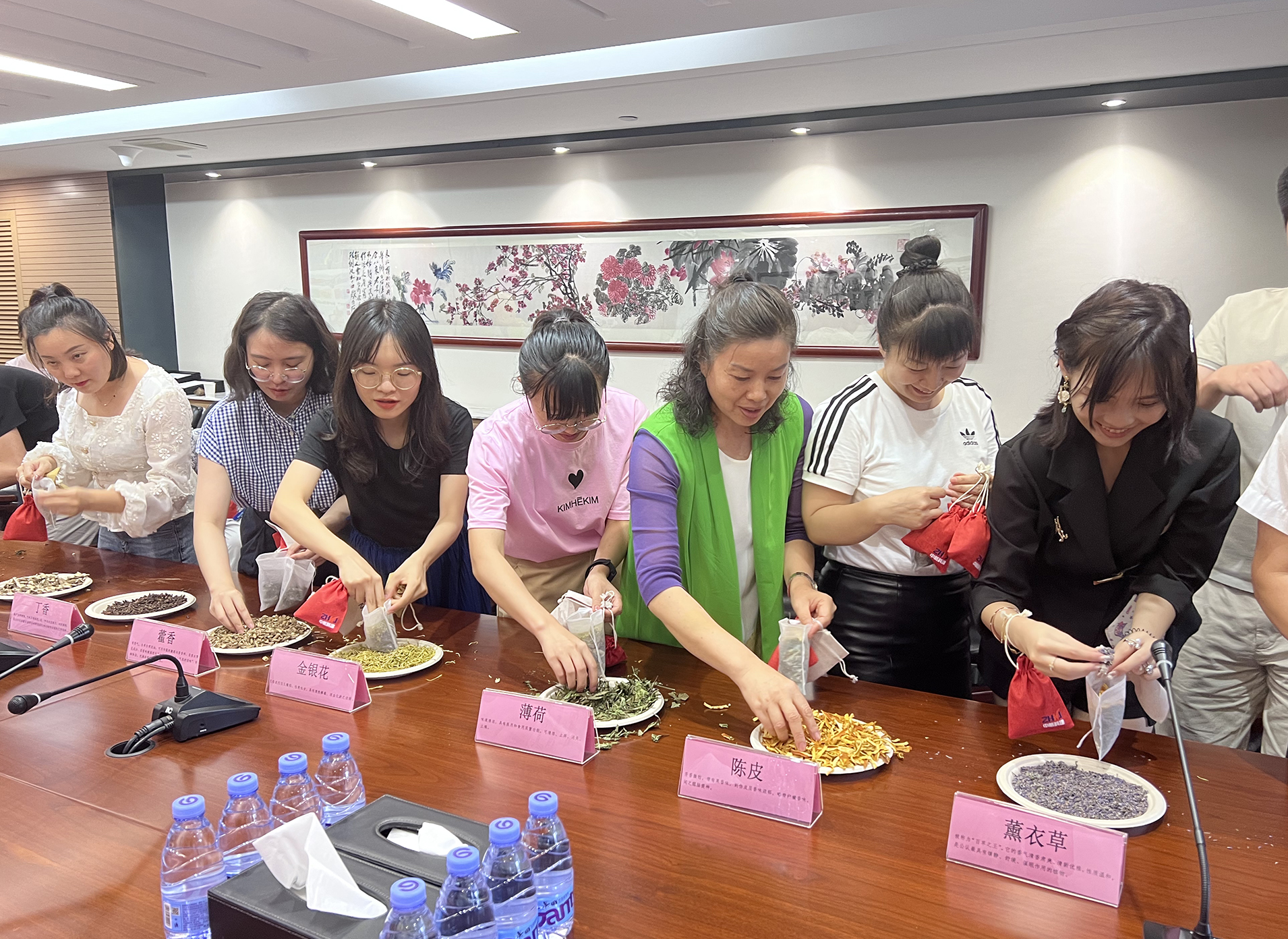 ? ? ? ?活動伊始,人事部同事向大家介紹各種香料的名稱和功效。佩戴香囊是端午節的習俗之一,有驅邪避瘟之意。本次活動特選取藿香、艾葉、陳皮等多味中藥作為香囊原料,既能提神醒腦、趨避蚊蟲,也能起到芳香避疫的效果。