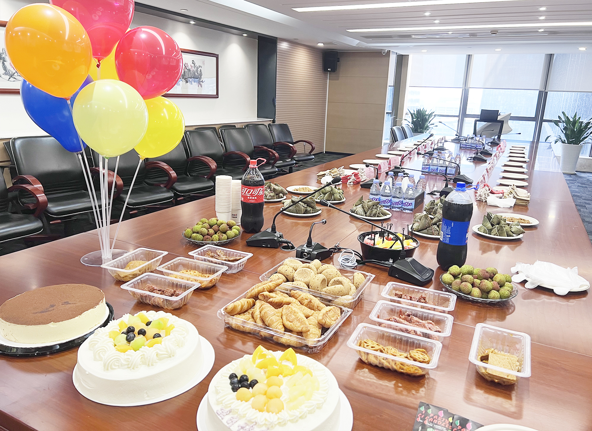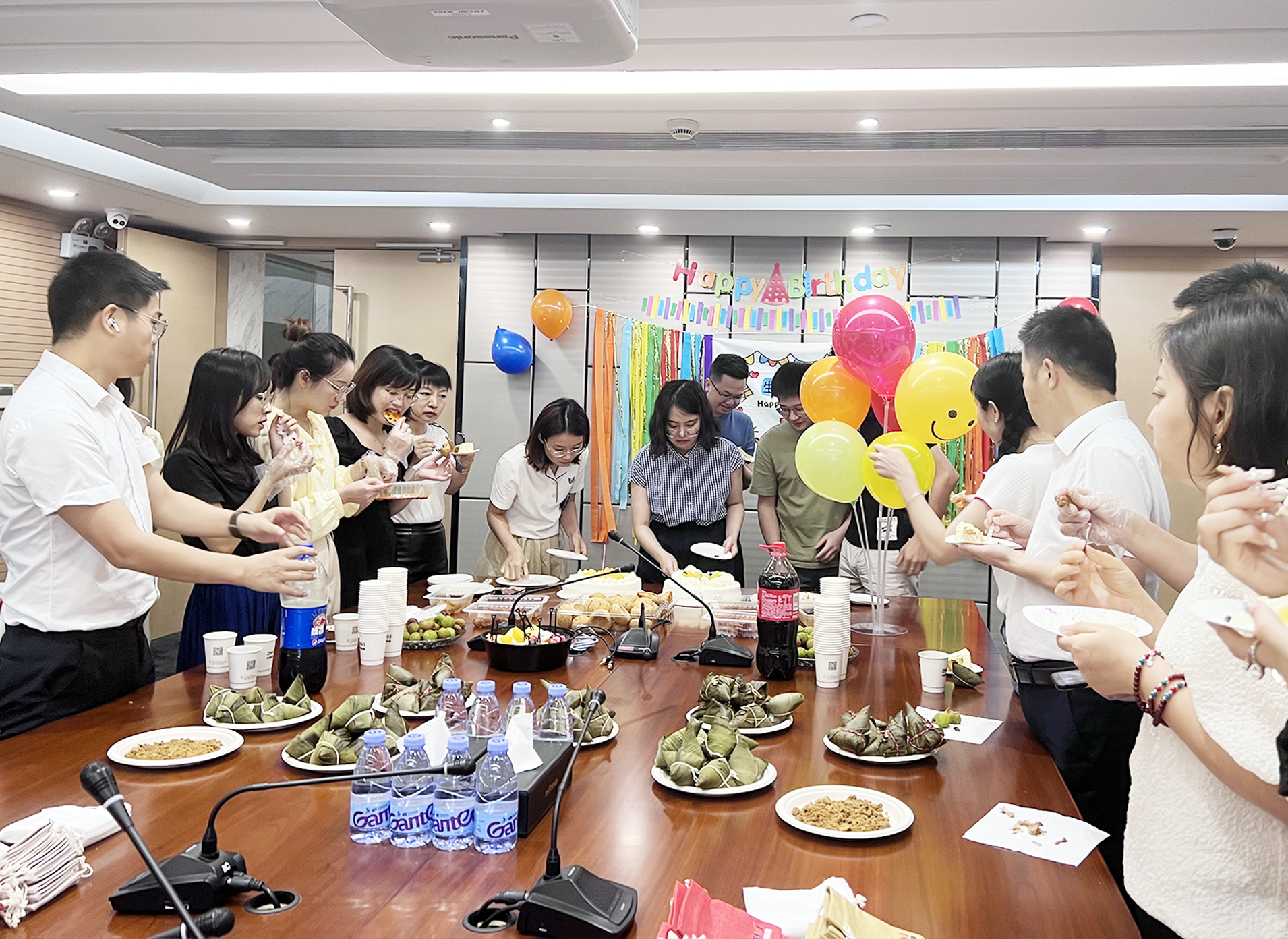 下午公司還舉辦了一場別開生面、其樂融融的員工集體生日會。公司為生日員工精心準備了生日蛋糕水果、飲品、零食等。大家齊唱生日快樂歌,現場充滿著溫馨的氛圍,其樂融融、幸福洋溢。