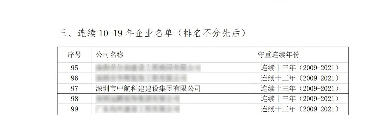 ? ? ? 近日,廣東省市場協會公示了2021年度“守合同重信用企業”(第一批)評定結果,深圳市中航科建建設集團有限公司再度上榜,至此已連續十三年榮獲此殊榮。