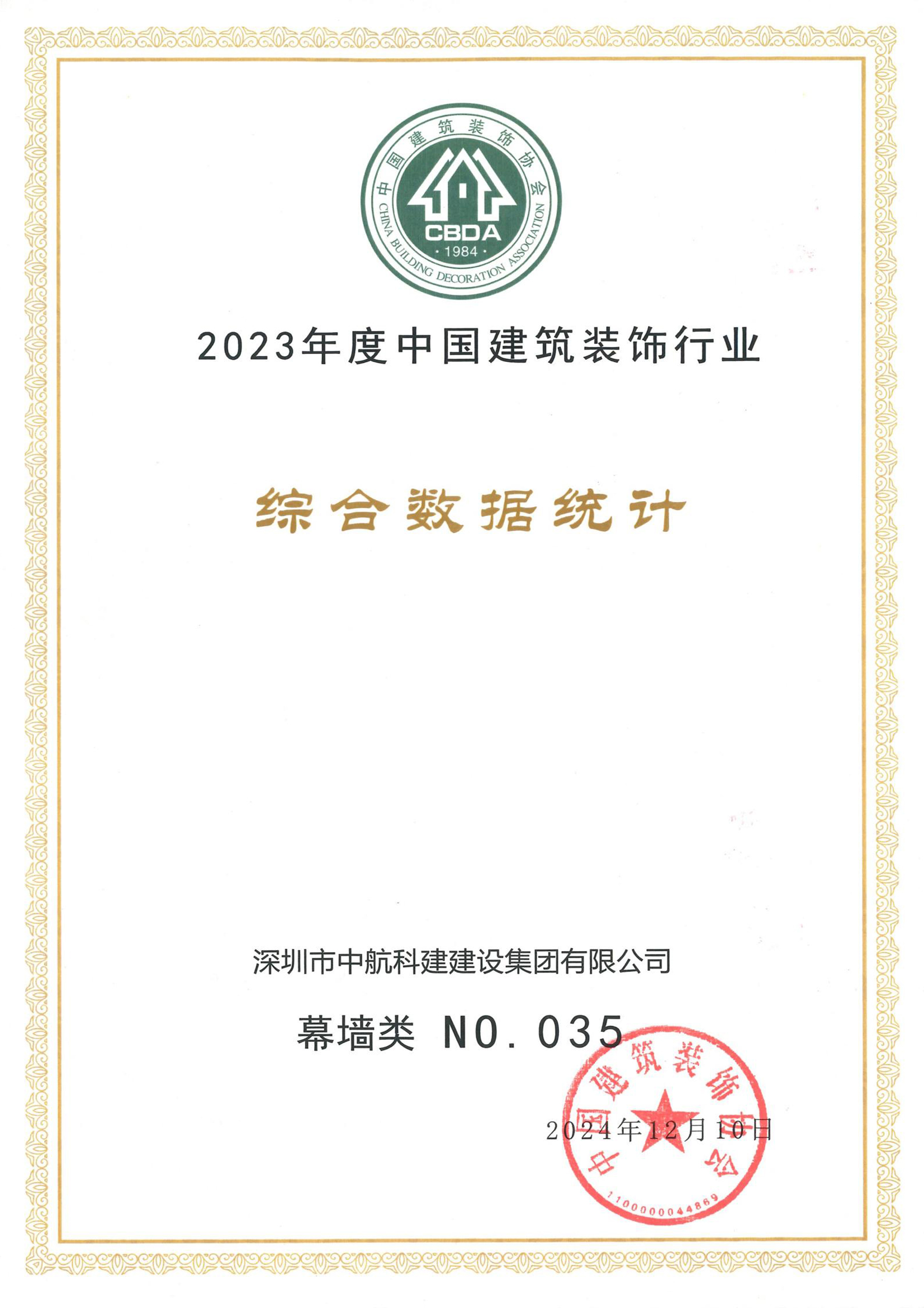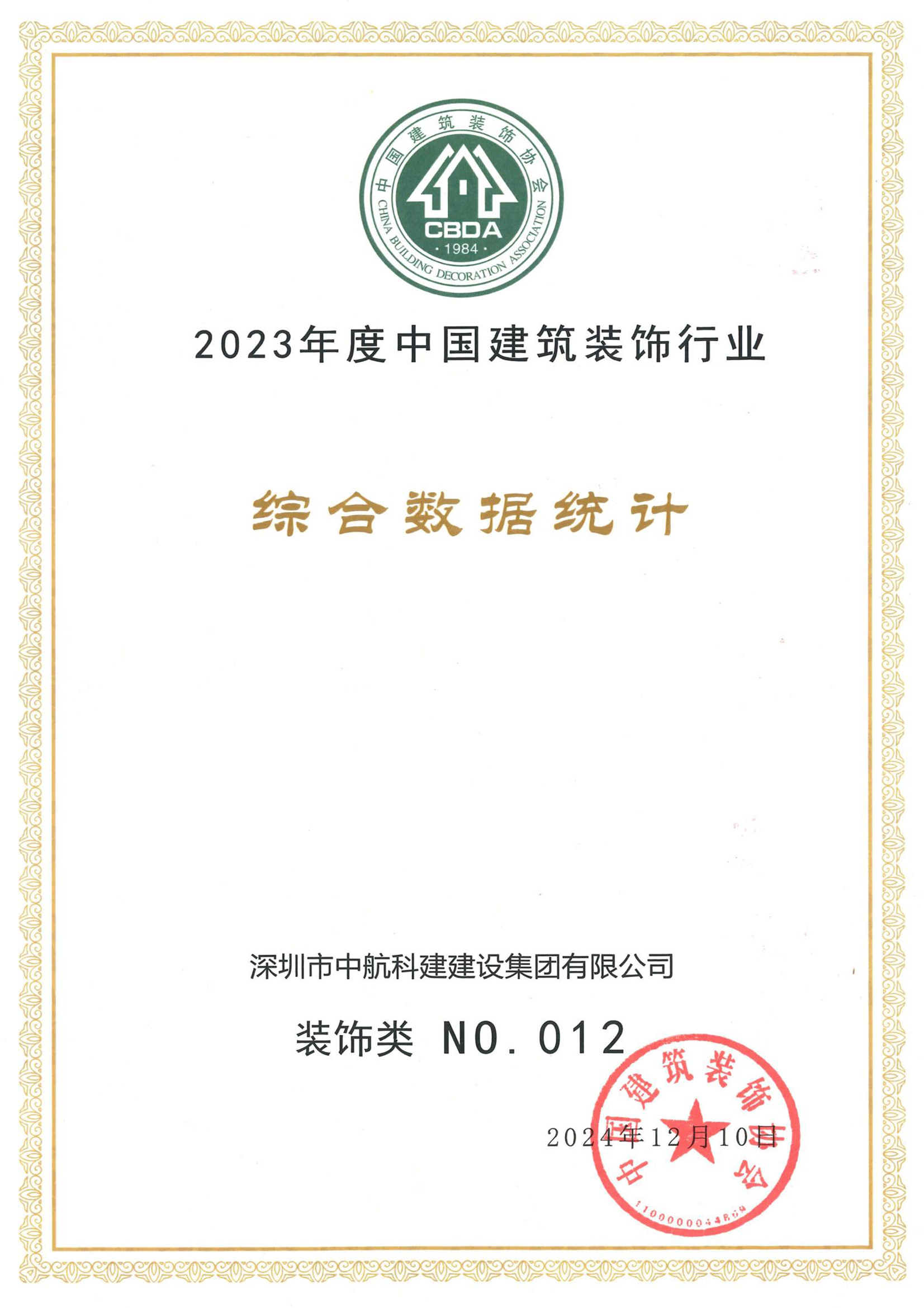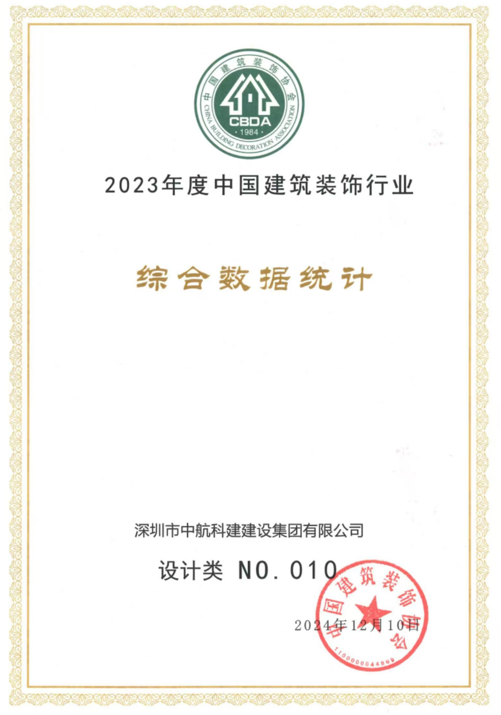 中航科建位居2023年度中國建筑裝飾行業(yè)百強前列