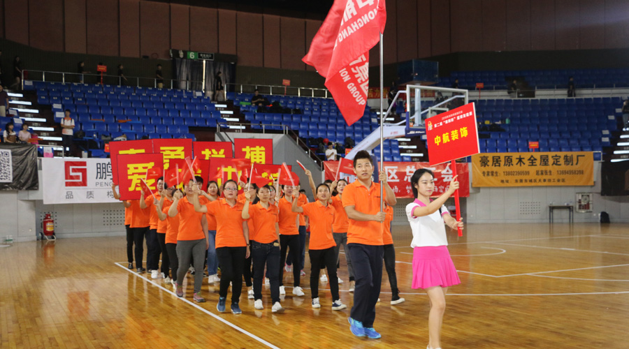 ? ??大賽開幕式正式開始后,各參賽企業(yè)組織的方陣隊伍與籃球隊隊伍依次出場,在現(xiàn)場熱烈的歡呼聲中,中航裝飾30人的方陣隊伍在舉牌手的帶領(lǐng)下邁著整齊堅定的步伐,昂首挺胸,步入會場,并喊著高昂嘹亮的口號“愛我中航 奮勇拼搏”經(jīng)過主席臺,接受檢閱。